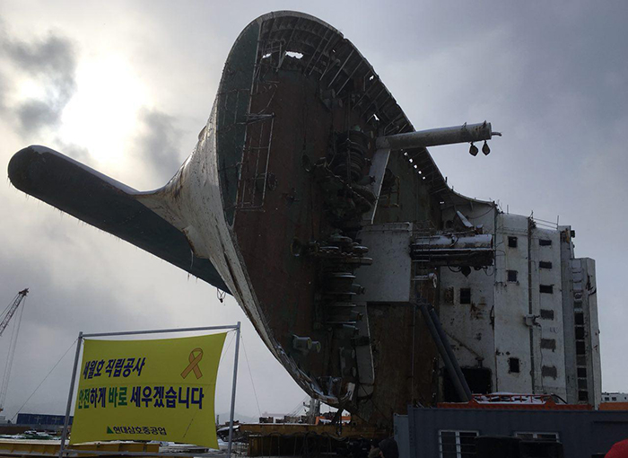 세월호 선체를 바로 세우는 공사를 앞두고 미수습자 5명의 수습을 기원하는 위령제가 열렸다.