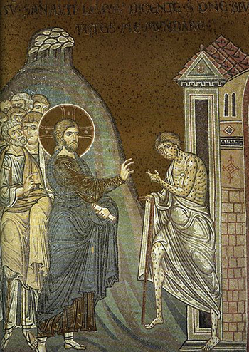 예수님은 갈릴래아인들이 모여 성서 읽기와 기도에 귀를 기울이는 회당에서 계속 메시지를 선포한다. 회당은 그 종교가 갖고 있는 종교적 기관들의 상징이다.(성전은 유대의 예루살렘에 있다). 나병 환자는 사회로부터 소외받고 있는 존재다. 그의 질병은 테러를 일으킨다.(오늘날 우리 시대의 나병인 에이즈에 관하여 일어나고 있는 일처럼) 뿐만 아니라 나환자들은 죄인으로 취급된다. 신체적 고통 이외에도 나환자들은 사회의 낙오자들이다. 레위기의 말씀은 그와 같은 상황을 거칠게 노골적으로 표현하고 있다. 피부병으로 고생하고 있는 사람들은 사제의 검진을 받아야 했고,(레위 13,1-2) 나병으로 판정될 경우 그들은 불결하게 여겨진다. 그래서 나환자들은 도시 외곽에 홀로 살아야 했고, 그들 자신이 불결하다고 스스로 크게 외쳐야 했다.(13,45-46)