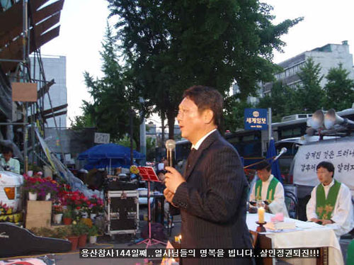 서울광장에서 진행하는 610항쟁 22주년 행사에 참석하느라