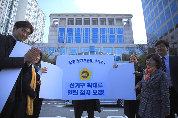 이에 따라 지난 13일 오후 부산시의회 앞에서 정치개혁부산행동 등 시민사회단체와 정당들이 집회를 열고 선거구획정위의 최종 획정안을 존중하고, 주권자들의 민심이 존중되는 선거구 획정을 촉구했습니다. 부산광역시 선거구획정위원회의 최종 획정안에 의하면 2인 선거구가 종전 52개에서 30개로 줄어든 대신, 3인 선거구는 기존 18개에서 23개로 늘어났습니다. 4인 선거구는 하나도 없는 상태에서 7개가 새로 생겨났습니다. 여전히 2인 선거구가 많기 때문에 만족할 만한 변화는 아닙니다. 하지만 지역정치의 기득권을 유지하고 싶은 자유한국당은 이마저도 반대하고 있는 상황입니다.