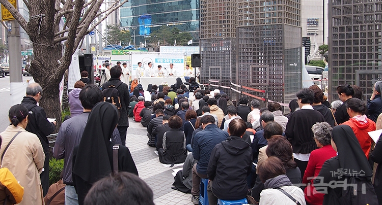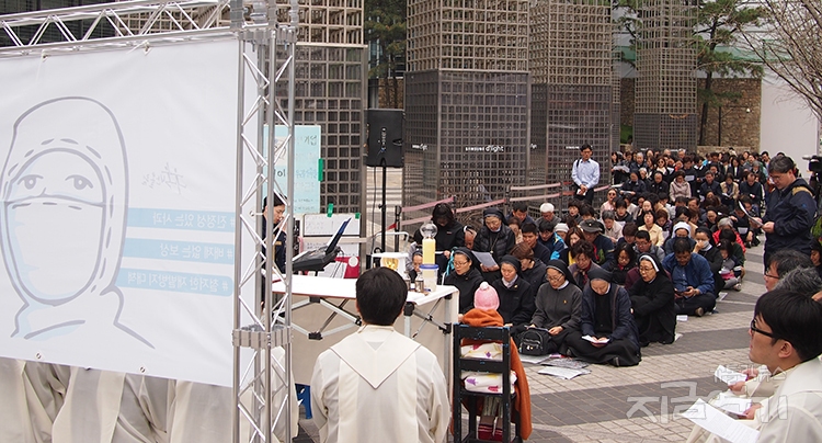 강남 삼성전자 앞에서 부활절 미사 봉헌