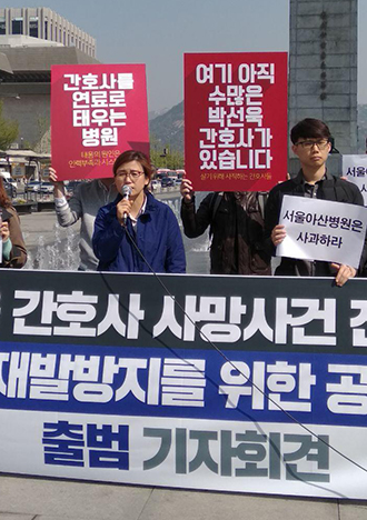 '고 박선욱 간호사 사망사건 진상규명과 산재인정 및 재발방지를 위한 공동대책위원회'가 4월 17일 서울 광화문광장에서 기자회견과 함께 출범했다.
