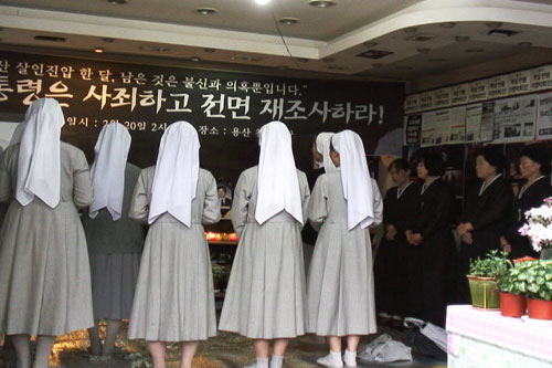 6/15 전국사제 1,178인은 시국선언문을 발표하면서 전국의 모든 교우들이 용산참사 현장을 방문하여 말없이 죽어가는 수많은 생명들을 추모하는 평화운동을 전개하기로 결의했습니다. 이번호부터는 참사 현장을 방문하는 발걸음을 소개합니다.