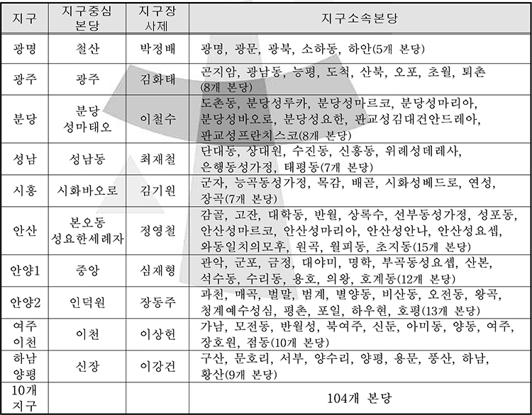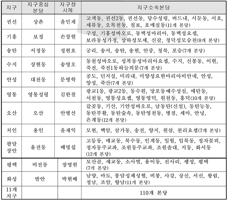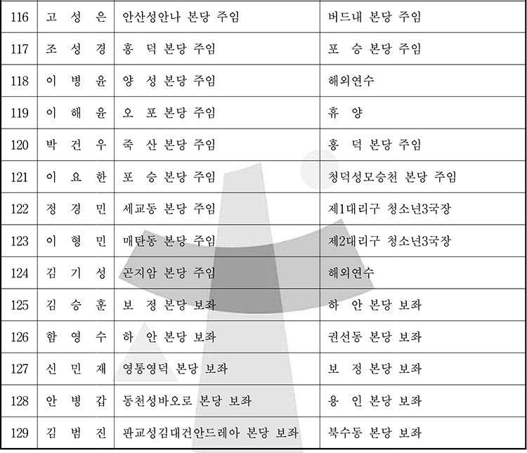 다음과 같이 본당을 신설합니다. 이로써 교구 내 본당 수는 214가 됩니다.