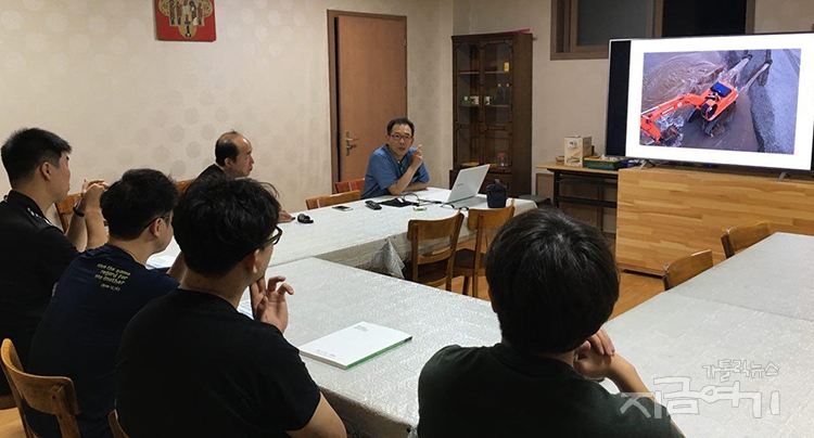 21일, 다음 날 4대강 사업 현장인 칠곡보, 영주댐 등을 찾기 위해 왜관 베네딕도수도원에 모인 신학생과 사제들은 4대강 사업 현장을 기록해 온 생태사진작가 박용훈 씨의 강의를 듣고 이야기를 나눴다.