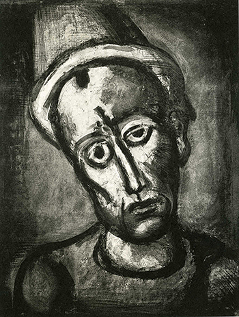 루오에게 구세주가 사람이 되어 오셔야 했던 이유는 여기에서부터 발견되는지 모릅니다. 그는 당시 자신의 작품을 통해 가난한 이들을 죽음에까지 몰리도록 탄압하고 자신의 이익만을 챙기던 권력자들과 사회 구조를 직접 비판했고 이와 연장선상에서 예수님을 죽음으로 몰고 갔던 당시의 권력자들과 수구 세력들의 폭압과 하느님의 어린양으로 그 길을 가신 예수님의 수난을 재조명했습니다. 예수님이 왜 우리의 죄 때문에 고난과 죽음을 겪으셨고 왜 비천한 이로서 가난한 이들 곁에 오셨는지, 그보다도 근본적으로 왜 사람이 되어 오셨는지 루오는 알아갔던 듯합니다. 그의 많은 광대 초상 연작 중 (그림 3)은 예수님의 수난을 그린 대작 시리즈인 ‘미제레레’에 포함되어 있습니다.