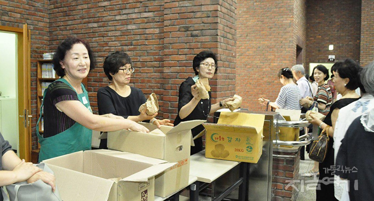 자매결연을 기념하고 축하하기 위해 우리농 매장 봉사자들은 감자 두 알이 담긴 봉투를 미사 후 신자들에게 나누어 주기도 했다. 우리농 매장에서 매일 봉사를 하고 있는 이문숙 씨(사비나)는 “분과장님과 둘이서 일주일 동안 감자를 하나하나 포장했다”면서 앞으로 우리농 매장도 더 잘되면 좋겠다는 욕심이 난다고 말했다.
