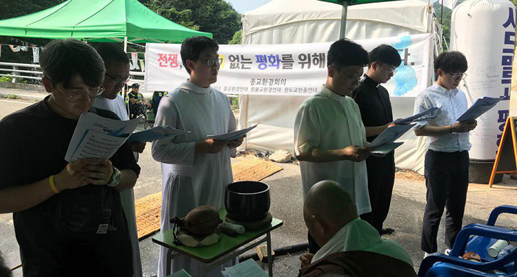 7월 19일 경북 성주군 소성리 진밭교에서 종교환경회의가 “전쟁, 무기, 핵이 없는 평화”를 지향하는 기도회를 열었다. 이번 기도회는 사드 반대 활동을 펼치고 있는 소성리 주민들에게 힘을 실어 주기 위해 마련되었다.