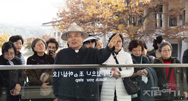 이번 여행에서 참가자들은 경주 국립박물관 마당에 있는 성덕대왕 신종과 석등, 망덕사지 등을 둘러보며 불교 유적지를 그리스도 신앙의 관점에서 재해석한 정 신부의 설명을 들었다.