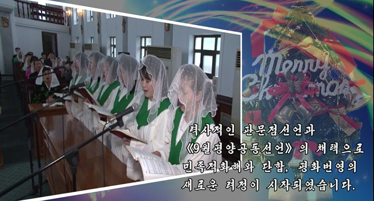 21일 성공회 서울주교좌성당에서 열린 성탄음악회에서 공개된 이 영상은 1분 38초 분량으로 조선종교인협의회 강지영 회장의 인사말, 평양 장충성당 성탄 미사와 평양 봉수교회 성탄 예배 영상 그리고 메시지 등으로 이뤄졌다.