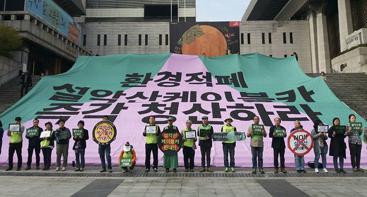 이틀 뒤인 1월 31일 서울행정법원에서 설악산국립공원계획 변경처분(설악산 오색 케이블카) 무효 확인소송 1심 선고가 있었다. 1심 판사는 5분 만에 주문을 읽으며, 설악산을 지키고자 하는 792명의 시민원고인의 청구를 모두 기각했다. 이 소송은 2015년 8월 28일 설악산 오색 케이블카 설치를 조건부로 허가한 국립공원위원회의 결정사항을 고시한 환경부 장관을 상대로 792명의 시민 원고들이 해당 고시가 하자 있다고 낸 소송이었다. 하지만 이번 판결에서 재판부는 미래세대를 위한 설악산국립공원의 보전 가치보다, 이동약자 등 국민 문화재향유권이 더 크다는 이유로 환경부 장관의 손을 들어 주었다. 1심 선고 뒤 법원에 있던 양양군 지역 토호들은 환호했다.