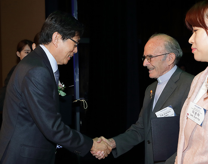 20일 열린 시상식에서 법무부는 제12주년 세계인의 날을 맞아 농촌 발전에 평생을 바친 프랑스인 두봉 주교에게 대통령 표창장을 줬다.