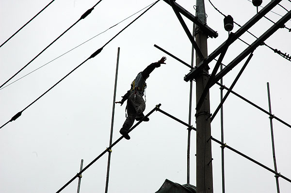 시멘트 덩어리(사진 속 노란 원안 )들이 사람들이 서 있는 쪽으로 떨어지곤 했습니다.