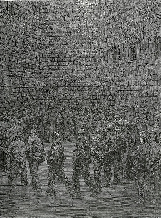 19세기 프랑스의 미술가 귀스타브 도레는 영국에서 개인전을 성황리에 여는 동안 특별한 계약 제안을 받습니다. 조건은 5년간 일 년에 3개월씩 런던에 머물면서 도시의 모습을 담아 달라는 것이었습니다. 당대 이미 유명한 삽화가였던 도레는 이를 승낙하여 긴 프로젝트를 시작했고 그 삽화들은 지금도 영국의 당시상을 기록한 중요한 자료로 남아 공저자의 글과 함께 꾸준히 출간되고 있습니다. 그림1은 그중 한 장면입니다. 도레가 선택하고 표현한 장면들은 어찌 보면 런던 사람이 아닌 타인의 눈으로 보았기에 가능했던 것들인데, 그는 하나를 그리는 동안 사진 찍듯이 장면만을 담는 것이 아니라 그 안에 오래 머물며 사람들을 만났습니다. 도시 뒷골목 지붕 없이 자는 가족들, 부당한 상거래가 오가는 시장의 상인들, 편파적 재판이 이루어지는 법정의 사람들 등, 그 사회에서 이미 지극히 당연하게 여겨진 사람들의 이야기가 담겼고, 그중 한 작품이 이 ‘뉴게이트 감옥 운동장’의 수감자들이 운동하고 있는 모습입니다. 당시 런던 현지의 미술 평론가들은 그의 이러한 작업들에 격분했고, “도레는 현실을 그대로 그린 것(copying)이 아니라 만들어 냈다(inventing).”며 고소하기도 했습니다.