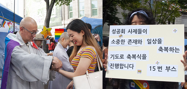 이날 축제에는 성공회, 개신교, 불교가 각자 부스를 두고, 연대와 지지를 상징하는 배지, 묵주, 팔찌 등을 나눠 주었다. 성공회 신부들과 개신교 목사들, 불교 스님들이 참가자들에게 기념품을 나눠 주거나 사진을 찍고, 함께 행진했다.