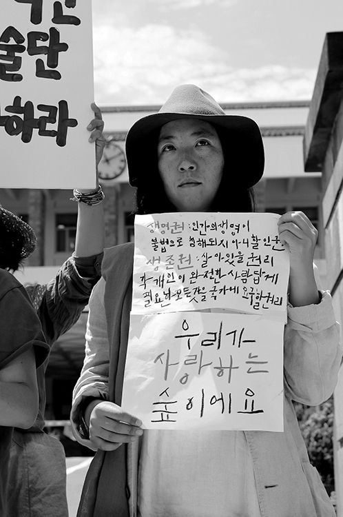 “왜 우리에게 묻지 않고, 숲 대신 길을 닦았나요? 왜 우리에게 묻지 않고, 숲과 마을을 파괴하고 공항을 건설했나요? 왜 우리에게 묻지 않고, 멸종 위기의 다양한 생물종들의 서식지들을 파괴했나요? 왜 우리에게 묻지 않고, 산과 들에 초고압 송전탑을 지었나요? 왜 우리에게 묻지도 않고, 마음대로 우리의 삶을 결정했나요?”
