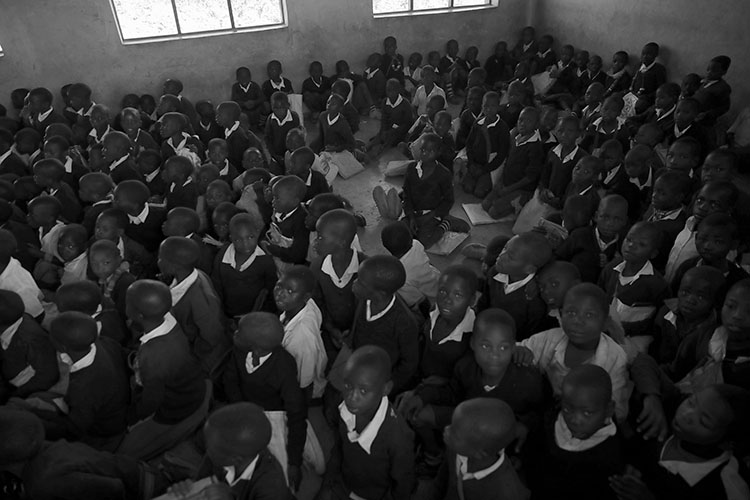 탄자니아에서도 형편이 매우 어려운 루크와 주의 초등학교(탄자니아에서는 프라이머리 스쿨이라고 합니다)의 한 교실을 방문했습니다. 교실에 발을 딛는 순간, 첫 장면을 잊을 수가 없습니다. 책상도 걸상도 신발도 없이 학생들이 맨바닥에 빼곡하게 앉아 있었습니다. 물론 책도 공책도 없는 것 같았습니다. 책가방은 쌀자루나 옥수수 포대 같은 남루한 것이었습니다. 교실에는 까만 눈동자들만이 별들처럼 반짝였습니다.