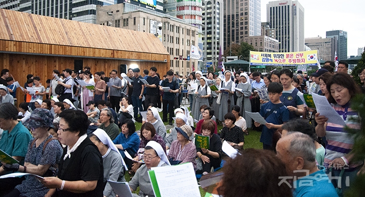 한편, 이날 ‘대한민국수호천주교인모임’(이하 대수천)은 3주째 미사를 방해하는 집회를 열었다.