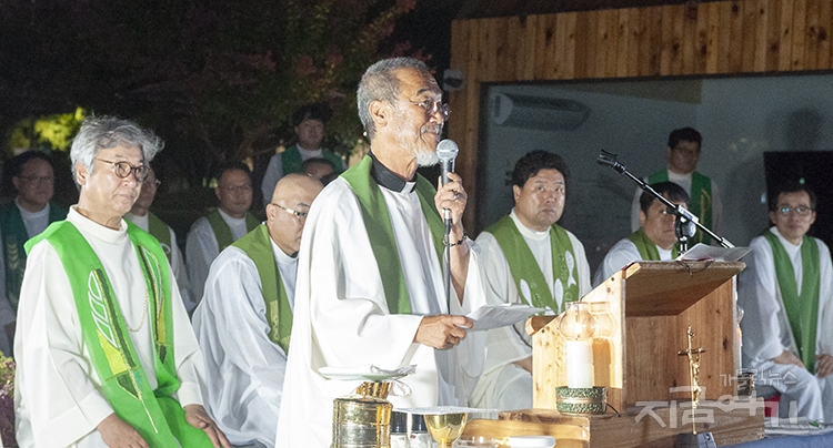이날 미사는 사제단 대표 김영식 신부(안동교구) 주례로 전국 교구와 수도회에서 온 30여 명의 사제가 공동 집전했다.
