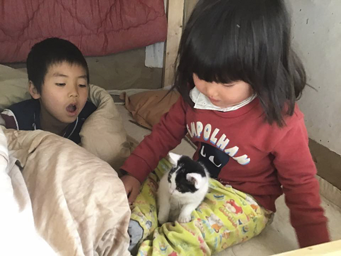 나 같은 사람이 이 정도면 아이들이야 말할 것 있나. 아이들은 집에 아주 작은 아기가 있는 것과 비슷한 충만감을 느끼는 것 같다. 이 사람 저 사람 만나면 우리 집에 고양이가 있다고 자랑하고 싶어 하고, 밖에 외출해서도 고양이의 안부를 궁금해 한다. 까칠한 다울이도 고양이 앞에서는 순딩이 오빠가 되고, 안 그래도 생명 있는 것들과 쉽게 가까워지는 다랑이는 제 몸과 마음을 고양이 놀이터로 이미 다 내어 주었다. 아직까지 다나는 고양이 인형과 실제 고양이 사이에서 혼란스러워 하는 것 같긴 하지만, 조금씩 응징을 당해 가며 고양이에겐 자기 의지가 있다는 걸 배우고 있다.