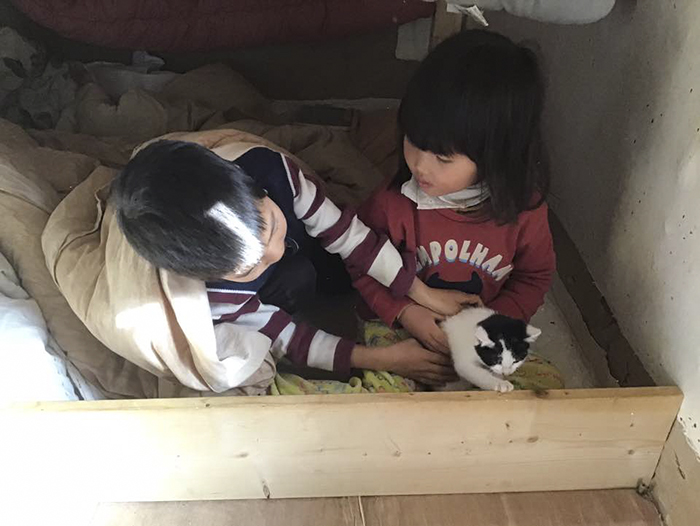 삐삐의 경우는 처음 본 낯선 장소임에도 전혀 아랑곳하지 않고 여기저기 탐색에 들어갔다. 아이들에게도 쉽게 다가가 애교를 부리고 아랫목에 철푸덕 엎드려 까무룩 잠도 자고 말이다. 그런데 아니카는 가방 구석에서 한 발자국도 나오지 않았고 나와서도 구석진 데 숨어서는 나타나질 않았다. 저대로 두어도 괜찮을까 걱정스러울 정도였는데 삐삐가 활개를 펴고 다니니 마음이 놓였는지 이틀 째부터는 사람이 있어도 숨지 않았다, 그러더니 차츰차츰 사람 있는 데 가까이 와서 몸을 누이고 마침내는 만져 달라 신호까지 보내게 되었다, 지금은 뭐, 두 마리 모두 우리 식구와 함께 한 이부자리에서 자고 뒹굴고.... 그야말로 묘하게 어우러져 살고 있다. 동물에 대해 경계심 강한 내가 고양이와 동침하는 날이 올 줄이야!