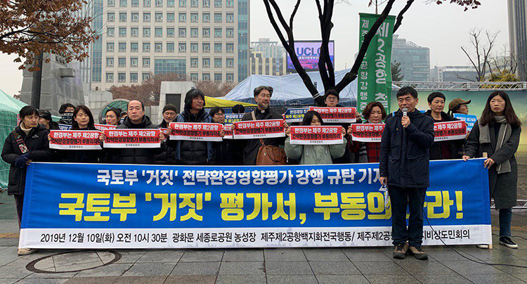 전국행동과 비상도민회는 10일 기자회견을 열고, 국토부와 환경부의 "밀실 협의로 국토부의 전략환경영향평가 통과를 뒷받침하고 있다는 의구심이 든다"면서 “수차례 문제 제기에도 국토부는 그동안의 검토의견과 제주도민의 요구를 철저히 묵살”했다고 비판했다.