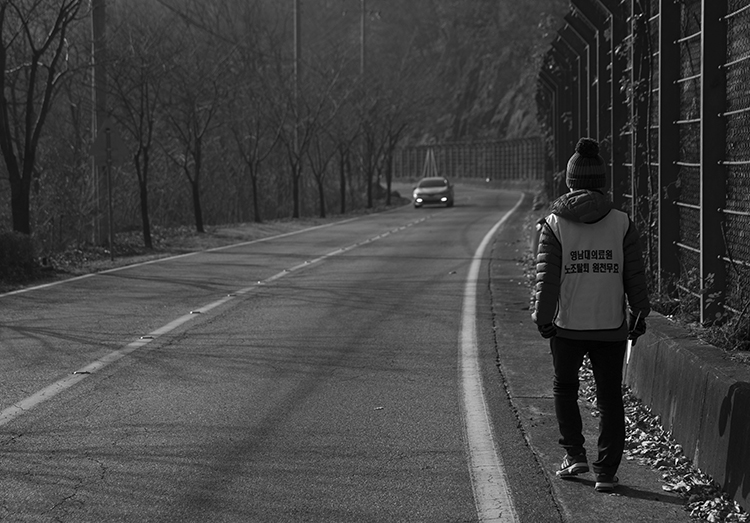 김진숙 지도위원은 혼자 걸으면서 대구까지 약 20일을 생각했다고 합니다. 그러나 동지들이 모여 함께 걸으니 약 7일 정도로 단축되었습니다. 성탄 바로 전날이었던 도보행진 둘째 날, 김진숙 지도위원은 말합니다. “오늘 같은 날, 박문진, 톨게이트 노동자들 그리고 강남역 고공 위 김용희 동지에게 예수님이 오셨으면 좋겠습니다.”라는 말이 큰 울림으로 다가왔습니다.