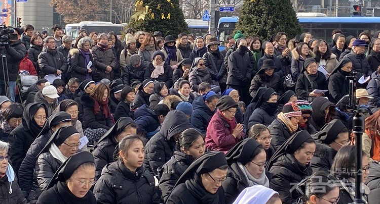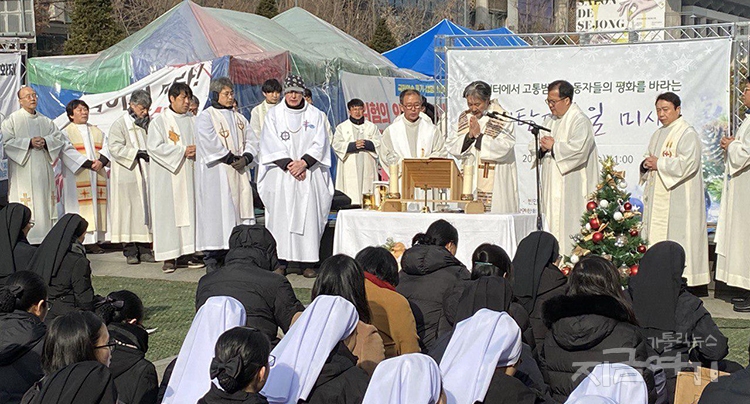 12월 25일 서울 광화문에서 봉헌된 ‘일터에서 고통받는 노동자들의 평화를 바라는 성탄 대축일 미사’에는 사제, 수도자, 신자 300여 명이 참석했다.