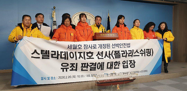 20일 가족과 대책위는 국회에서 기자회견을 열고, 스텔라데이지호 선사인 폴라리스쉬핑 판결에 대해 “첫 유죄판결은 역사적 의미가 있지만, 구형에서 대폭 감형된 판결에 매우 허탈하다”고 입장을 밝혔다.
