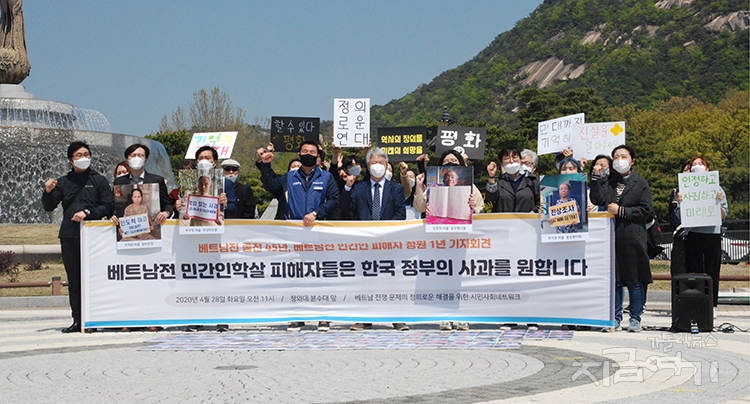 4월 28일 청와대 분수대 앞에서 베트남전 종전 45년을 맞아 “베트남 전쟁 문제의 정의로운 해결을 위한 시민사회네트워크”(이하 네트워크)가 기자회견을 했다. 또한 베트남전 민간인 피해자들이 한국 정부에 청원서를 제출한 지 1년이 되었다. 네트워크에는 제주교구장 강우일 주교가 이사장으로 있는 한베평화재단을 비롯해 시민사회단체 108개가 함께한다.