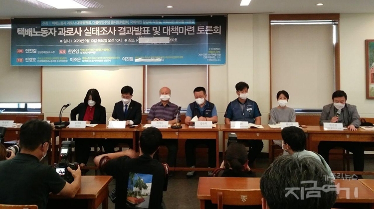 10일 택배 노동자 과로사 대책위원회(이하 과로사 대책위), 더불어민주당 을지로위원회, 윤미향 의원실, 장경태 의원실은 ‘택배 노동자 과로사 실태조사 결과 발표 및 대책 마련 토론회’를 열고, 택배 노동시간을 과도하게 늘리는 분류작업에 지원 인력부터 먼저 투입해야 한다고 촉구했다.
