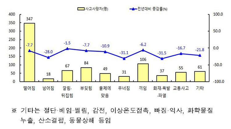 “떨어짐, 넘어짐, 깔림, 뒤집힘, 무너짐, 끼임, 화재, 폭발, 파열, 교통사고, 질식....”