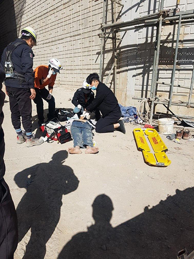 그가 작업했던 곳에 설치된 비계(높은 곳에서 작업하기 위한 발판)는 안전 규정에 따라 제대로 설치되지 않았다.