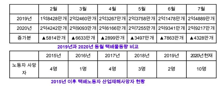 살인적 노동량, 산재적용 제외 강요 등 정부와 택배사 공동책임