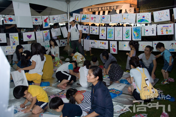 ▲아이들이 김 전 대통령을 추모하는 그림을 그려 분향소를 꾸몄다.