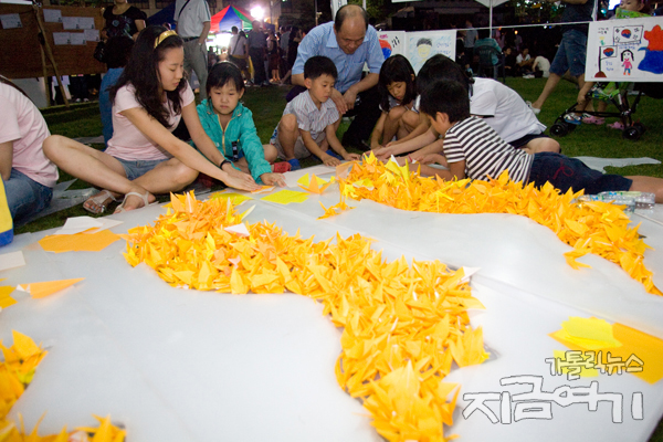 ▲한반도의 평화ㆍ통일을 위해 헌신했던 김 전 대통령의 염원을 담아 한반도 지도를 학으로 가득 채웠다.