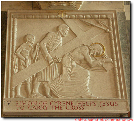 5처 키레네 사람 시몬이 예수가 십자가 지는 것을 도와줌