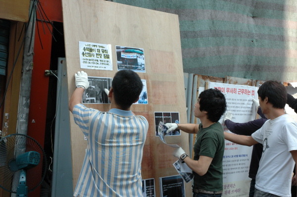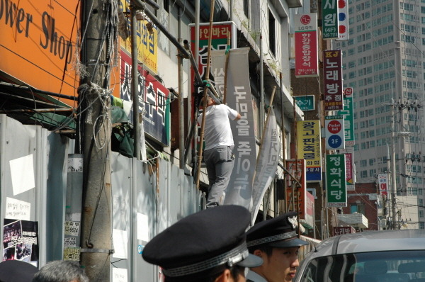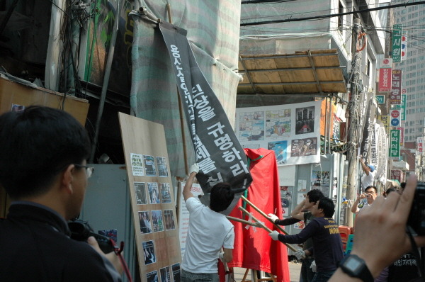 9월 15일 오후 2시 경찰과 용산구청, 용역들이 사전 통보도 없이 몰려와 용산참사 현장인 남일당 일대의 현수막과 만장들을 모두 철거해 갔다.