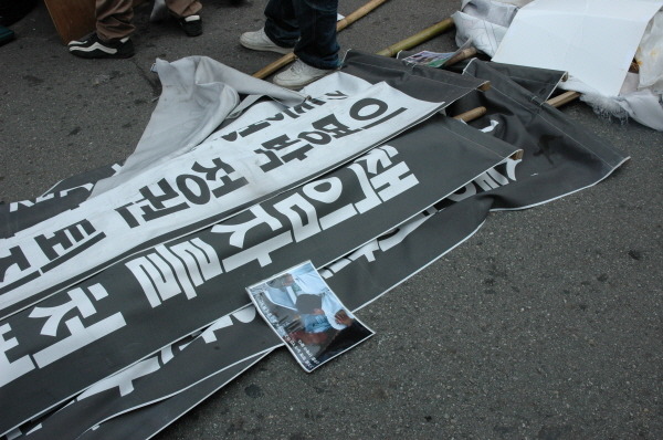 이날 다행히 다친 사람은 없고 천막 기도처도 무사했다. 천막 옆 현수막만 철거해 갔다. <가톨릭뉴스 지금여기 http://www.catholicnews.co.kr>