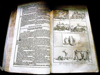 초기 독일어 번역본 성경의 모습, 마틴루터는 기독교 성경을 알기 쉽게 문답식으로 정리했다.