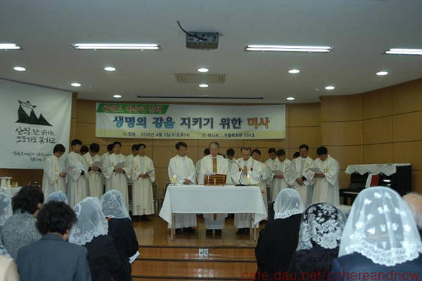 한편 인천교구의 생명의 강을 지키기 위한 미사가 지난 2일 오후 가톨릭회관에서 진행됐다. 200여명의 신자가 함께 이준희 총대리 신부 외 20여명의 사제단 집전으로 진행된 이날의 미사를 통해 참석자들은 창조질서를 거스르는 한반도 대운하의 문제점을 짚어보고 건설 계획 백지화에 마음을 모았다. 미사 후에는 한반도 대운하 건설 반대 성명서가 발표됐다.