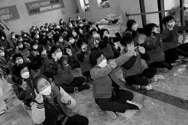 부산 신라대학교 청소 노동자들이 2021년 2월 28일자로 전원 해고됐습니다. 청소 노동자들은 이에 항의하며 대학본부 로비에서 농성 투쟁을 전개하고 있습니다.