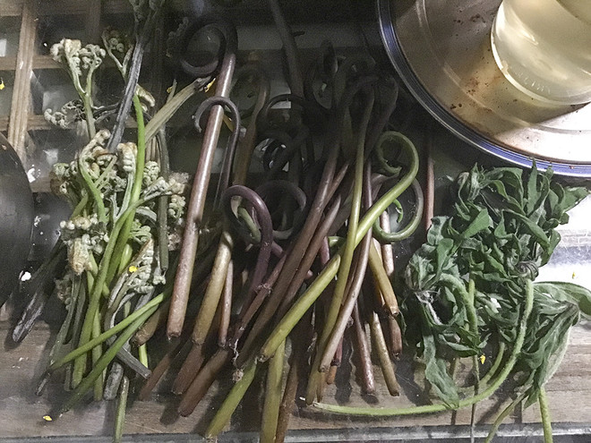 "다랑이랑 논에 갔다가 우리 논 옆 산기슭에서 깨침(고비) 군락지를 발견했어. 깨침 비슷한 게 있어서 그것도 끊어 왔는데 수봉 할머니가 그건 독 있는 거라고 해서 버렸고."