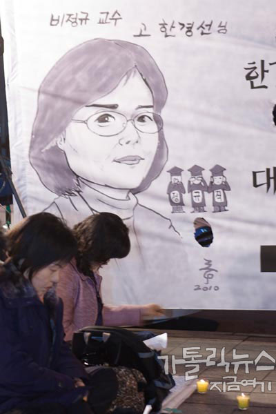 지난 2월27일 서울여의도 국회 앞에서 약 60여명이 참석한 가운데 '한경선 열사 2주기 추모와 대학 강사 교원지위회복 촉구미사'가 봉헌되었다. 한국순교복자 수도회 이상윤, 김성환 신부가 미사를 집전했다.