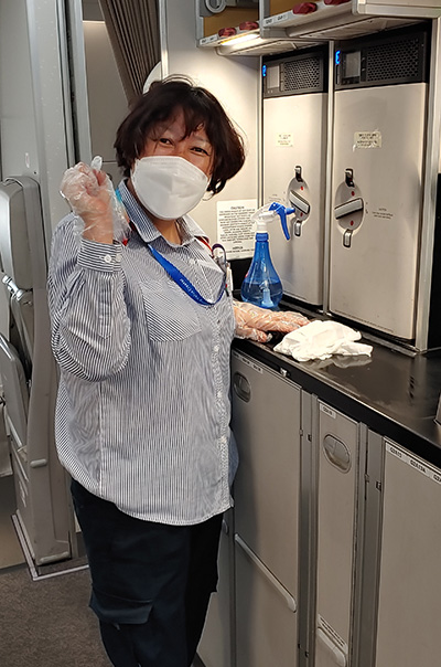 늘 하던 일인데도 첫차를 타고 오전 7시부터 시작된 근무는 무척 고되다. 2년여 만의 출근인데다 공항 출입증이 나오지 않아 전처럼 3일 일하고 하루 쉬는 순환제 근무가 아니라 더 그렇다. 그는 ‘스페셜 청소’를 맡고 있다. 일반 청소 뒤에 고급 좌석인 퍼스트, 비즈니스 클래스를 더 꼼꼼히 청소하고, 겔리(Galley, 기내에서 음료와 음식을 준비하는 곳) 바닥을 물과 솔로 문질러 닦는 작업이다. 일반 기내 청소보다 노동 강도가 더 세다. 비행시간이 촉박하면 기내 청소에도 투입된다.