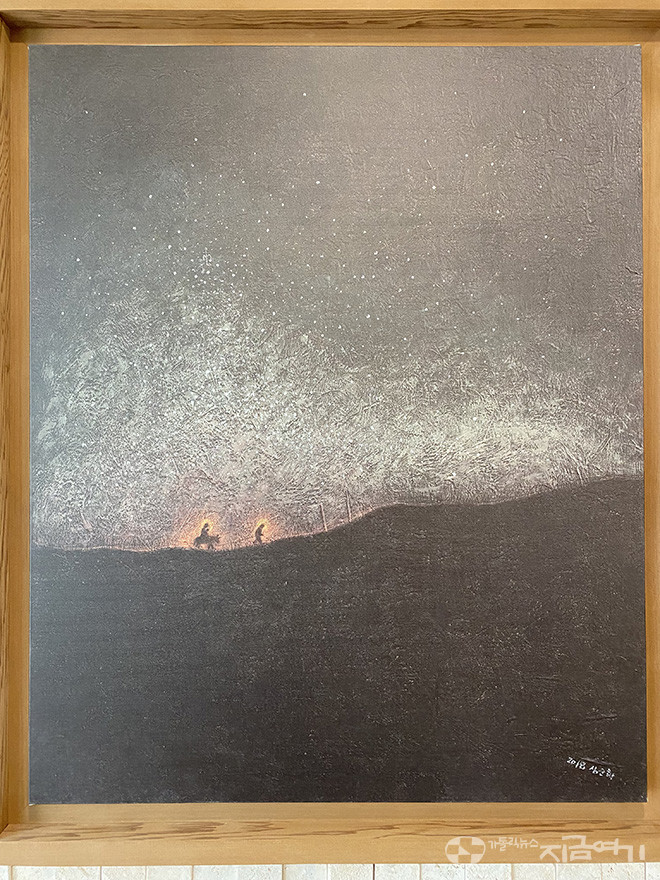 그때, 그가 접한 성화가 있다. 어두운 밤, 피난길에 오른 나귀에 탄 마리아와 예수, 그 곁의 요셉 성인을 묘사한 심순화 화백의 그림이었다. 아기를 지키기 위해 목숨을 걸고 이집트로 피난 가는 부모의 모습. 권력과 세상에서 버림받음의 끝을 보여 주는 장면이라고 그는 생각했다. 그리고 마리아와 요셉의 마음으로 돌보고 함께해야겠다고 결심했다.