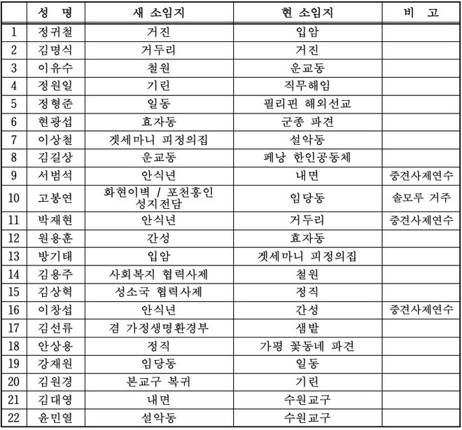 1. 천주교 춘천교구 사제 인사(2023.08.08)