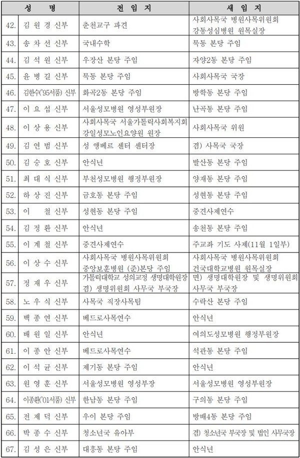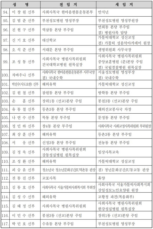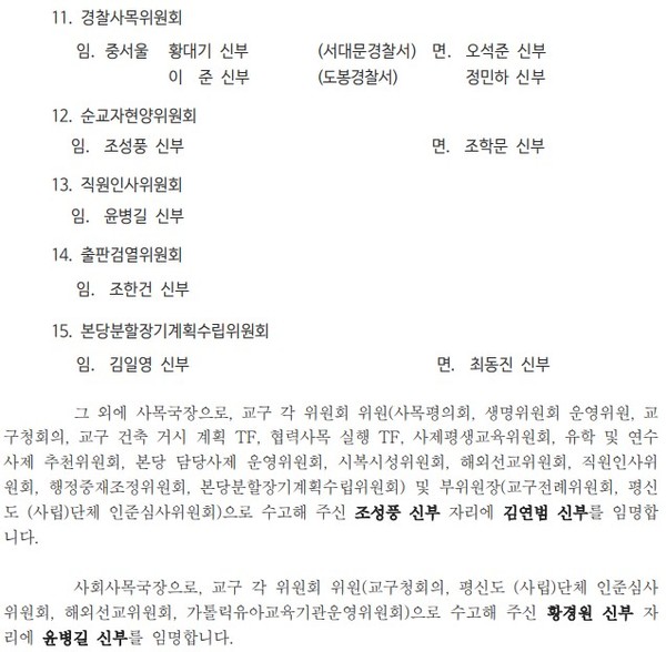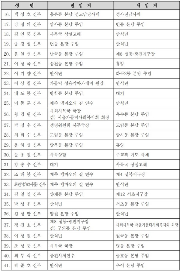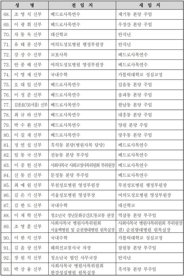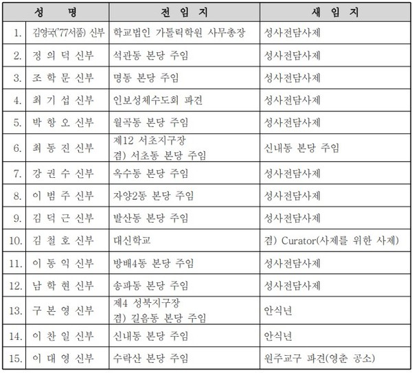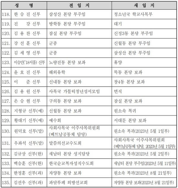1. 천주교 서울대교구 사제 인사(2023.08.25)