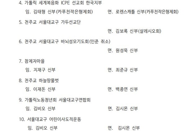 4. 교구 평신도 (사립)단체 담당 사제 임면