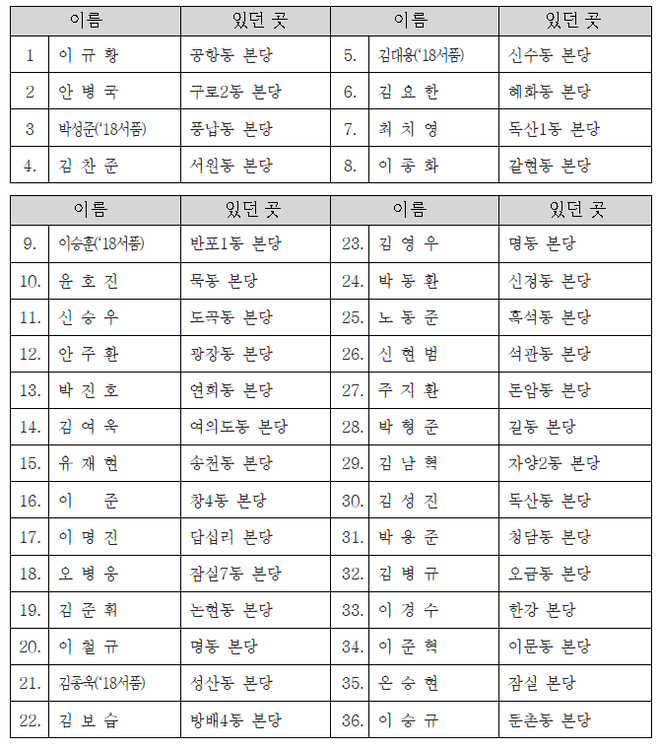 | 지구 | 변경 전 | 변경 후 |